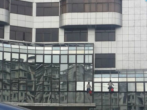 對(duì)幕墻表面進(jìn)行常規(guī)的清潔工作,包括玻璃、金屬、石材等面板以及周邊的框料和附屬設(shè)施。